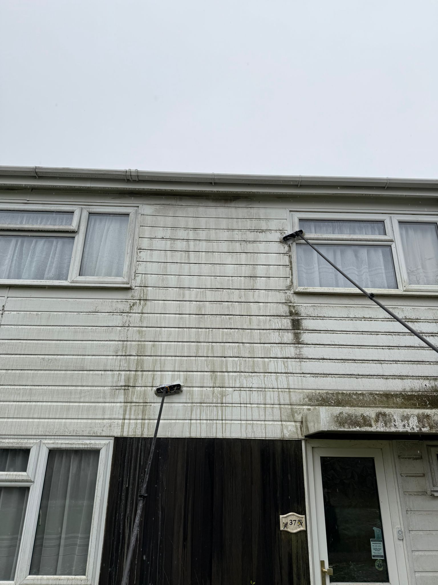 This method avoids ladders, scaffolding or pressure washing – and leaves a clean, consistent finish every time.